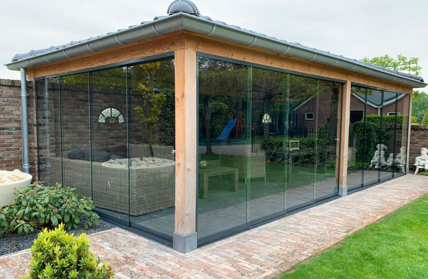 Wilt u ook met slecht weer van uw terrasoverkapping genieten? Met een glazen schuifwand van Sunparadise is uw overkapping volledig afgesloten. Door het glas heeft u toch het gevoel dat u buiten zit. Met een Sunparadise schuifwand heeft u dus maximaal comfort. Geniet ook met slecht weer van uw tuin.
