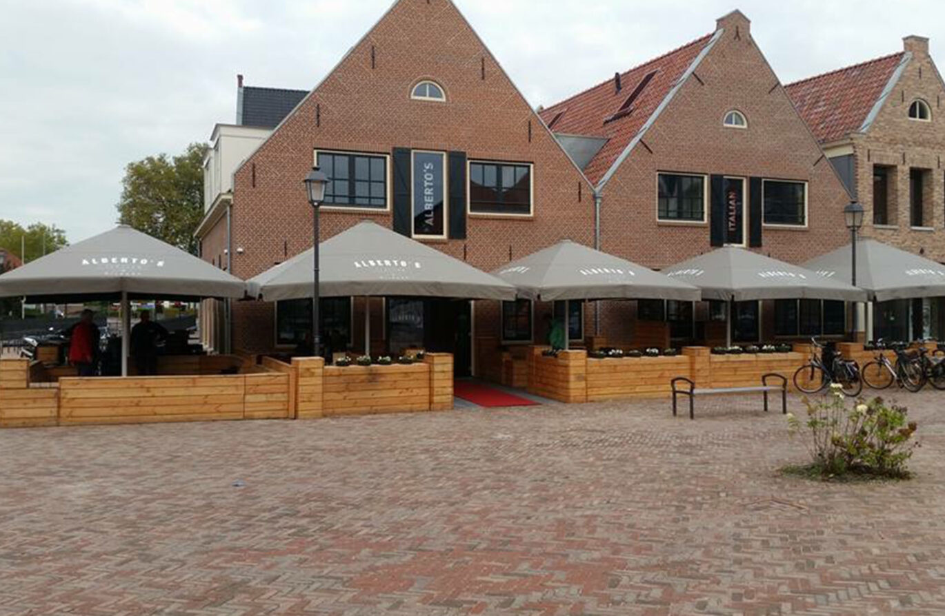 Uw zonweringspecialist Maak een afspraakVrijstaande zonwering horeca bij Ruiter Zonwering