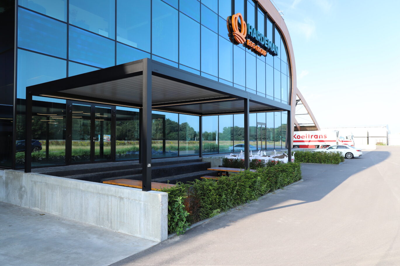 De Brustor overkapping met verstelbare lamellen is niet alleen ideaal voor woningen, maar ook uitermate geschikt voor bedrijfspanden, zoals bij het gloednieuwe industriepand van Hardeman Kwetters. Deze veelzijdige overkapping combineert functionaliteit en uitstraling, wat het perfect maakt voor zowel zakelijke als privé omgevingen. Voor bedrijven biedt een Brustor overkapping niet alleen beschutting en comfort, maar ook een representatieve uitstraling. Of het nu gaat om het creëren van een comfortabele buitenruimte voor medewerkers of een stijlvolle ontvangstruimte voor klanten, de verstelbare lamellen zorgen voor maximale flexibiliteit.