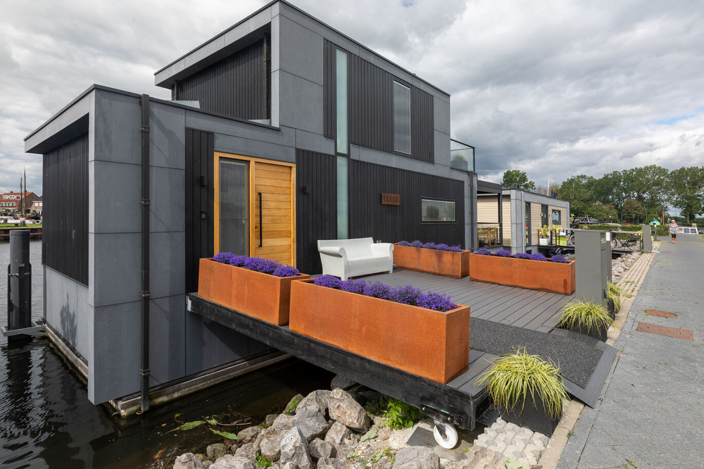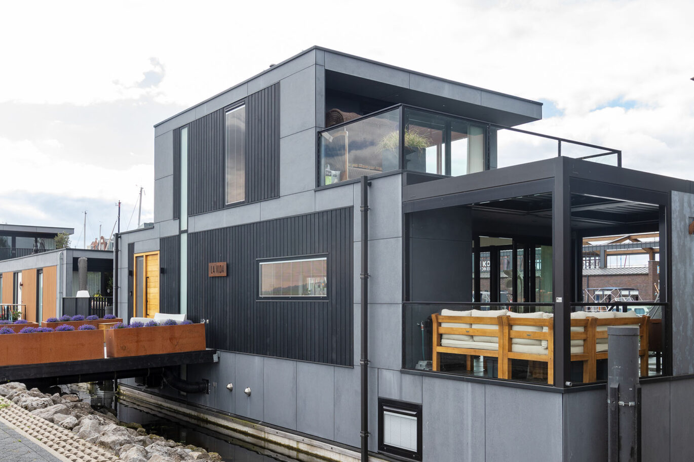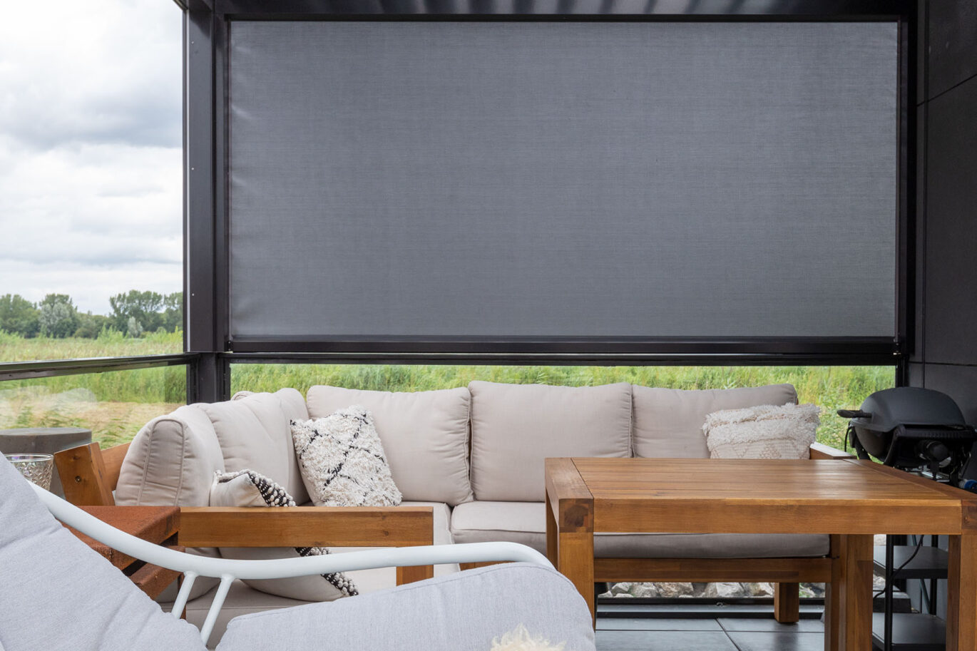 Deze prachtige waterwoning hebben we voorzien van een Brustor terrasoverkapping. De bewoners kunnen hierdoor extra lang genieten van de geweldige omgeving aan het water.