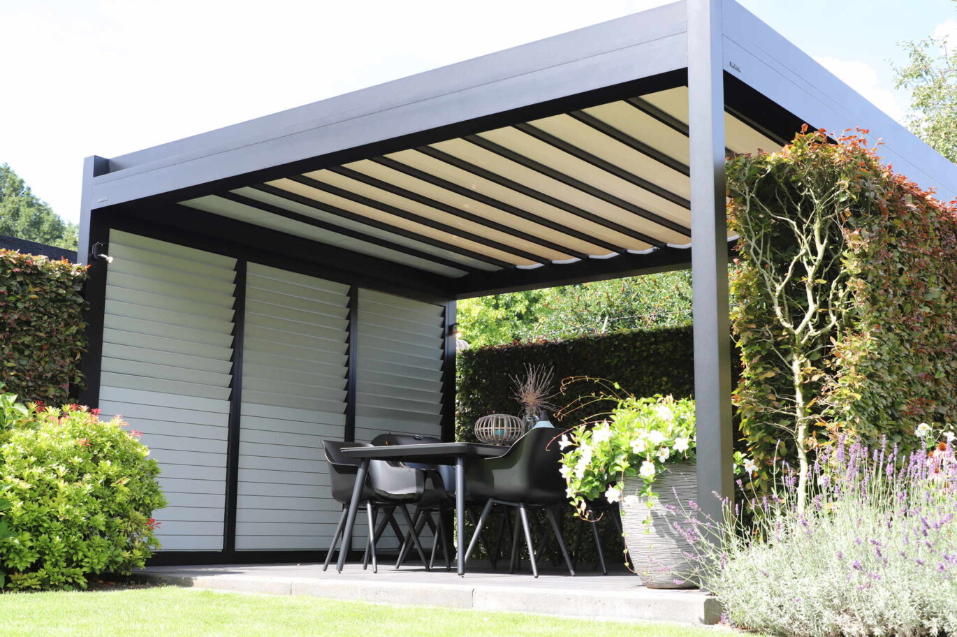 De pergola stretch biedt een perfecte balans tussen openlucht en beschutting. Met een simpele handeling kunt u kiezen voor een open terras, ideaal voor zonnige dagen en heldere nachten, of voor een volledig afgesloten ruimte die bescherming biedt tegen regen, wind en zon.